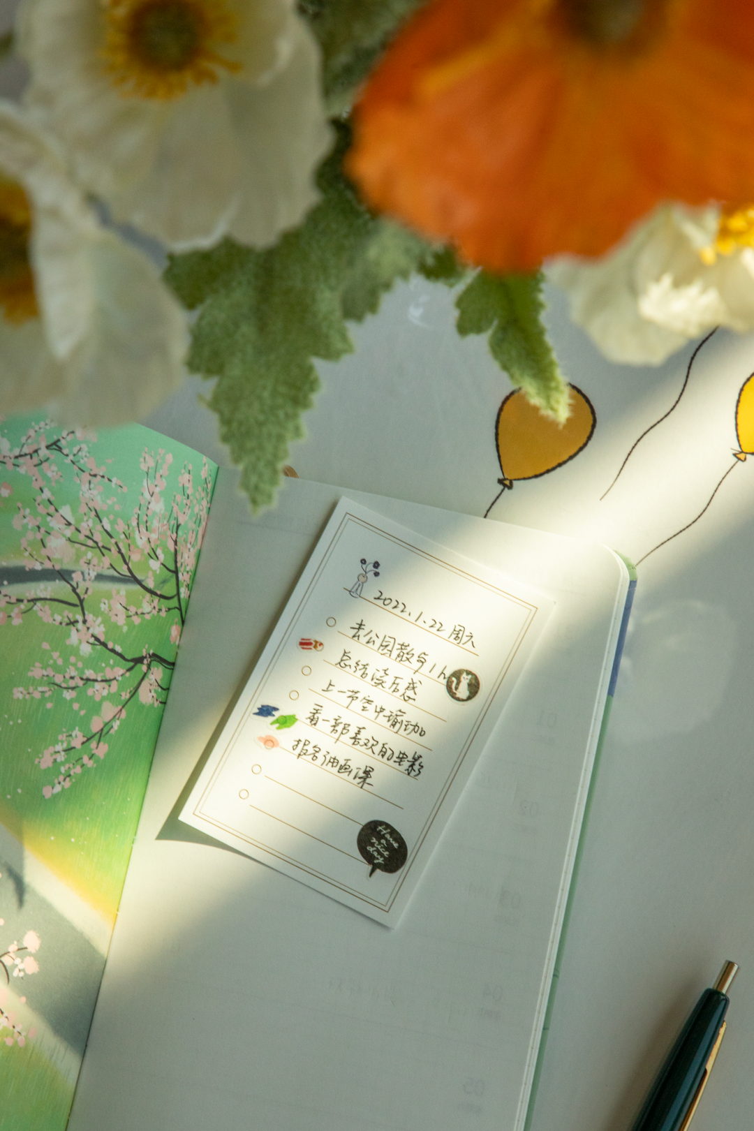 我喜欢在年初写下新的一年想要达成的心愿,可大可小,可实可虚。平时做月计划可以看看提醒自己,信我,这样真的更容易实现。年末复盘回顾,观察一下做到了哪些,会很有成就感,做不到也没关系,明年再想想是否需要继续。