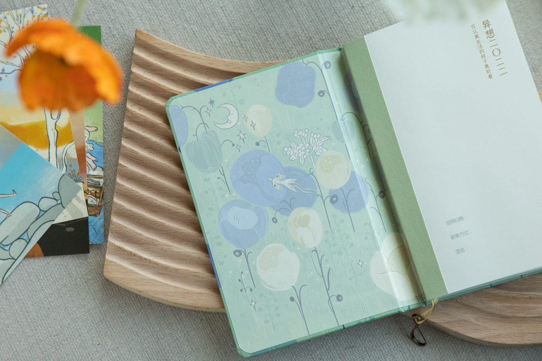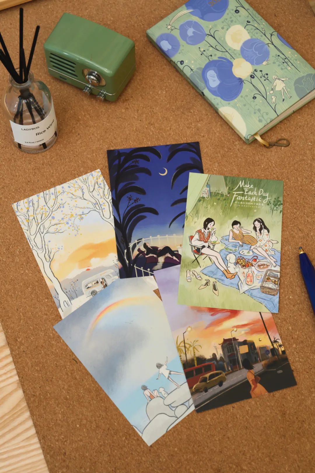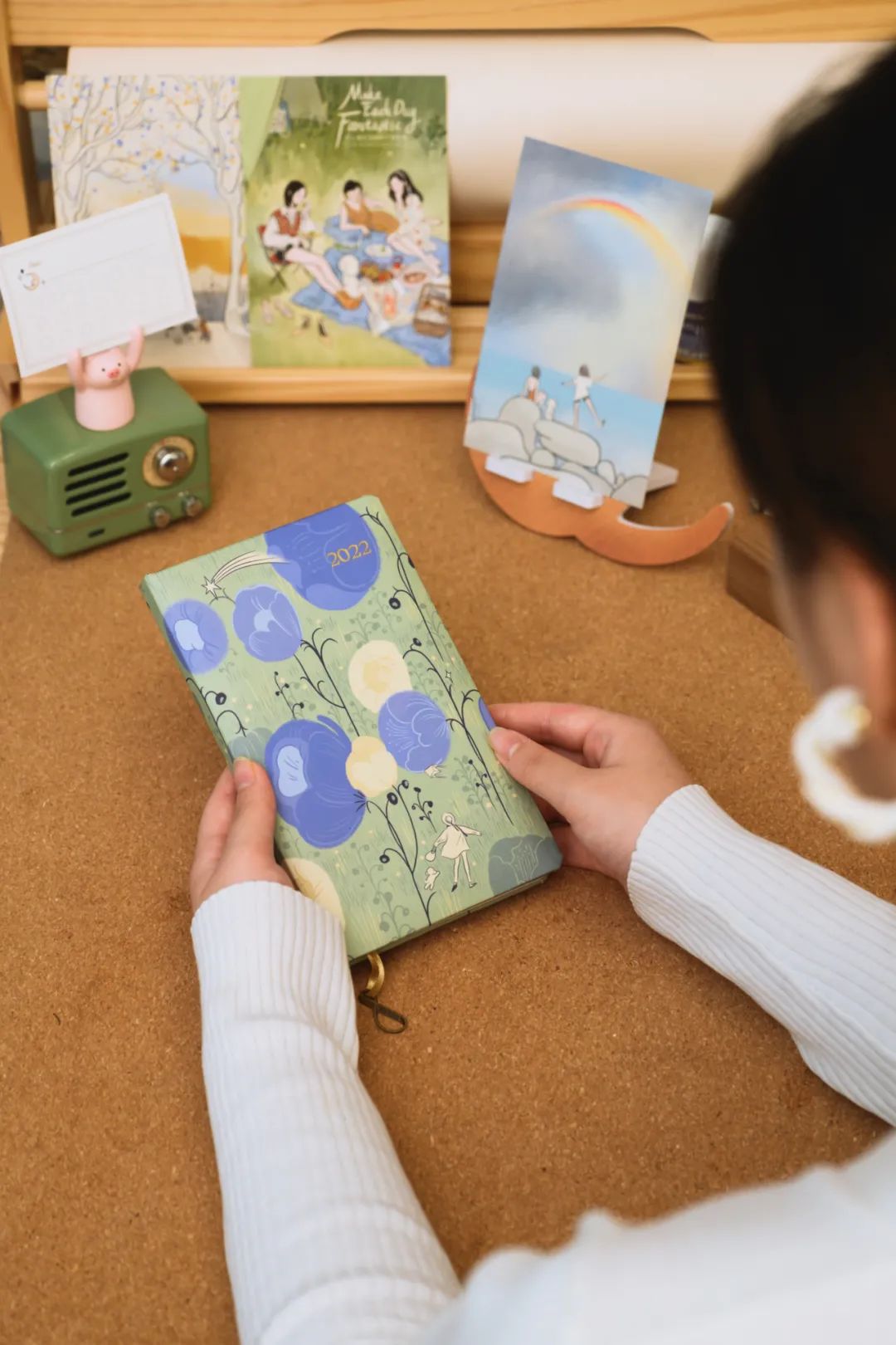 今年因为工厂限电产能有限,手帐的制作耗时更长了,导致今年手帐上线比往年晚了,所以我们多准备了 5张精美的插画明信片 送给大家,希望能给大家收到能有好心情。