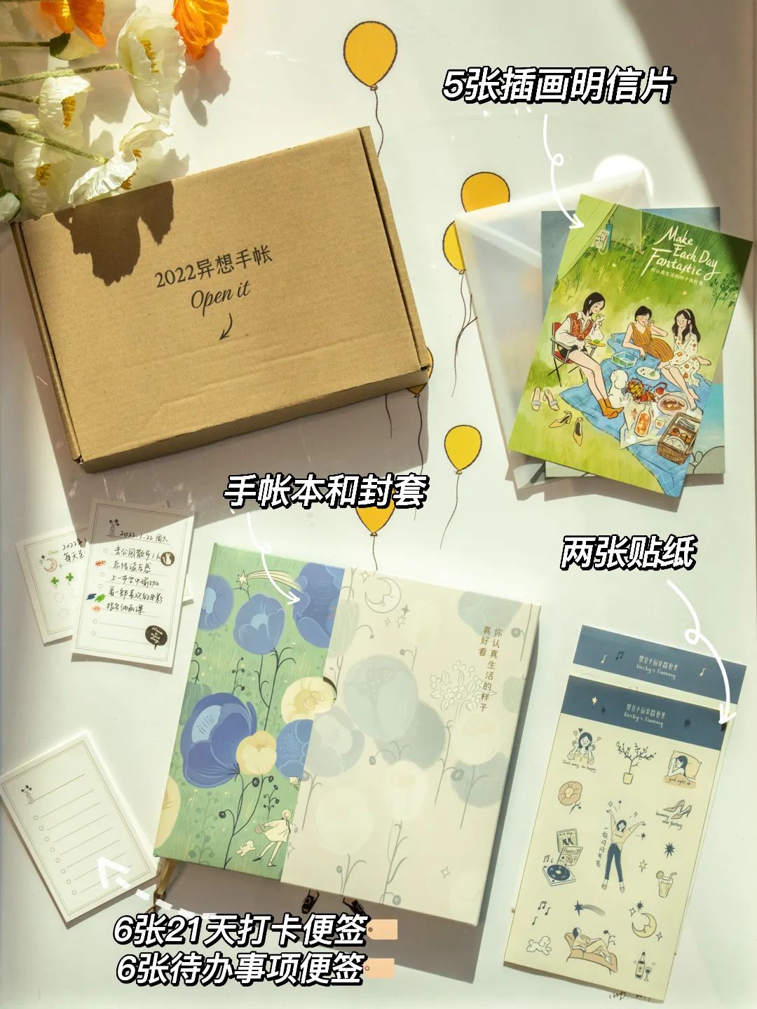 异想手帐一年一次的约会我们不会失约,今年也是虽迟但到,会保证大家在今年内收到,一起用手帐开启2022的美好生活!(12月15号起陆续按照订单顺序发货,手帐本身利薄不包邮。)