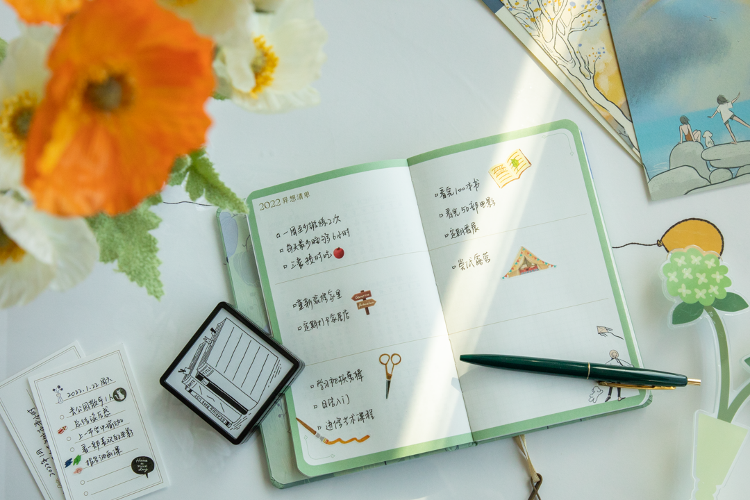 我不算是手帐达人,但坚持写手帐快十年了。这些年因为它的帮助,我也完成了很多“小目标”,比如说去年学会了游泳、挑战人生第一场直播、每天睡够6小时等等,今年的愿望也基本实现了!