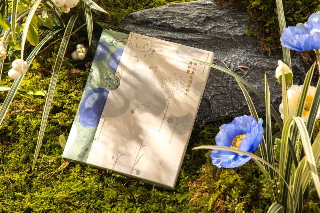 还有一个小变化——今年用的是量“书”定制的小快递箱,可以最大程度避免手帐边角磕碰。打开时更有仪式感,快递盒上写着今年的主题“你认真生活的样子真好看”。