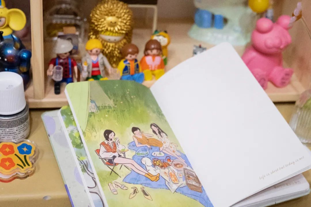 我一直想和朋友去野餐,没想到在我们7周年活动的时候实现了,还意外还原了手帐一张插画的场景哈哈~▼