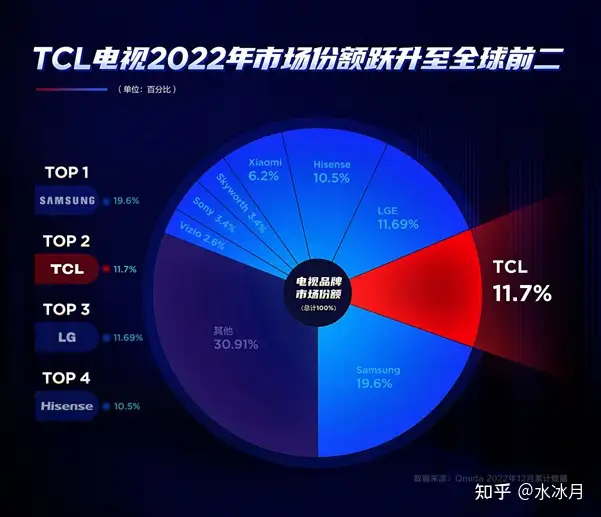TCL,国产大佬级电视品牌。凭借其电视的整机制造能力,近几年来稳居全球电视出货量前三的宝座。据权威市场调研机构Omdia发布调研报告,2022年TCL电视全球销量位居全球第二,反超LG。