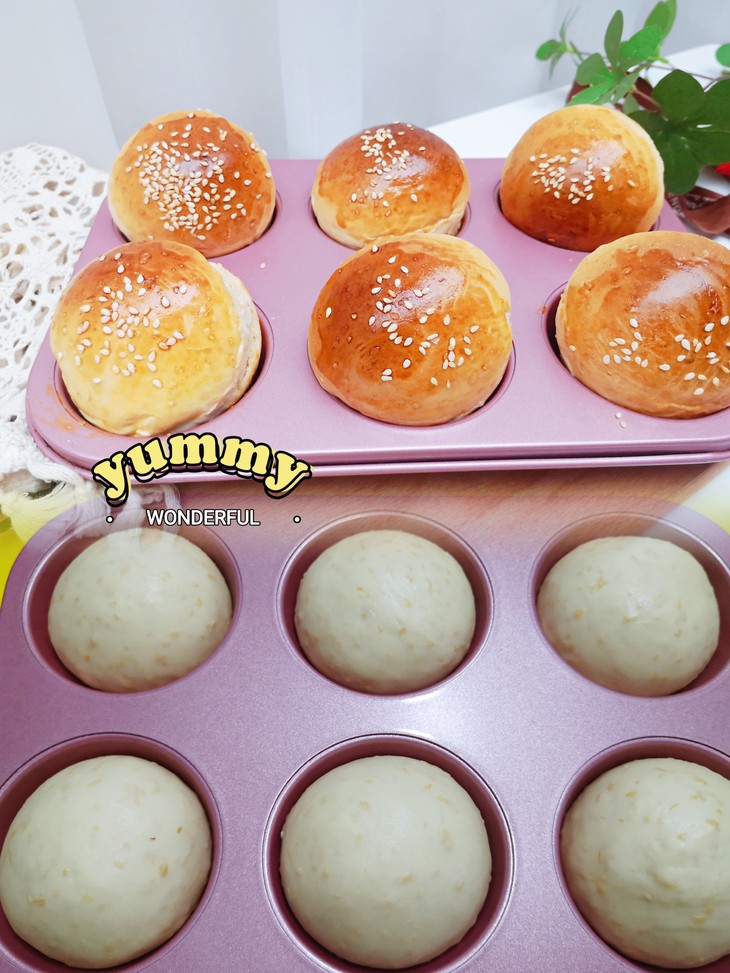 3.表面刷全蛋液,撒上白芝麻/黑芝麻/麦麸皮,放预热好的烤箱170度,20分钟。(中途上色满意后加盖锡纸)