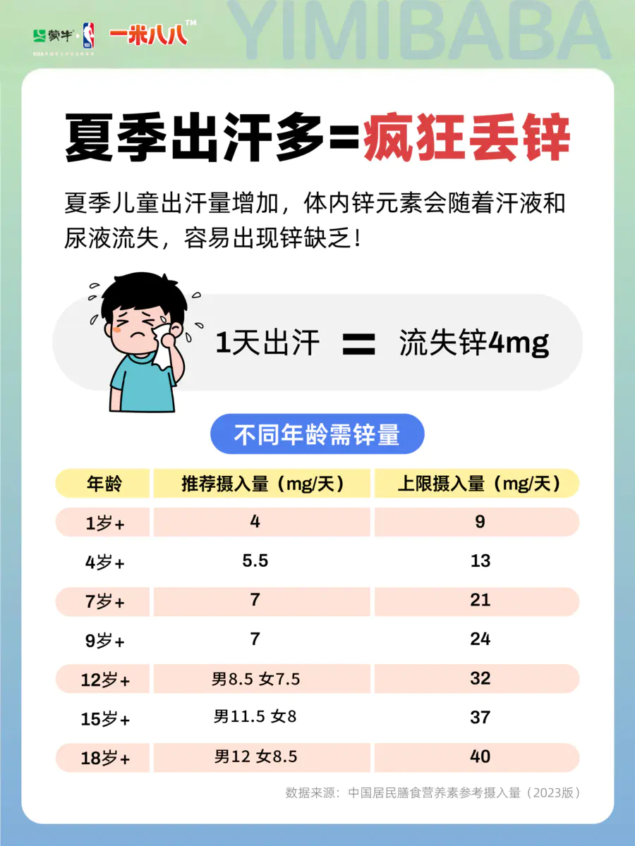 数据显示:儿童一天出汗,会流失4mg锌