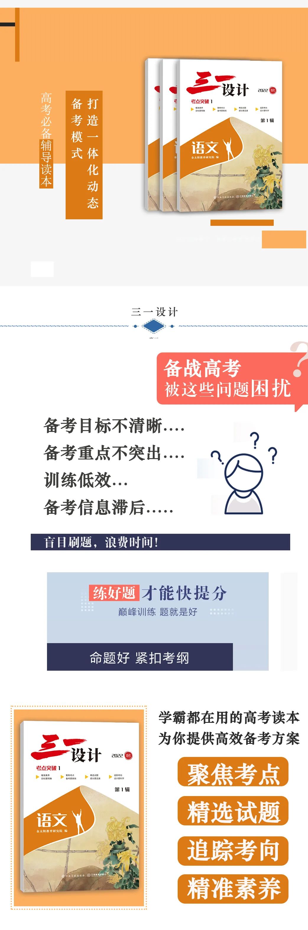 为此,小K向你推荐《三一设计》系列精品杂志,读透《三一设计》能有效的解决备考方向不明晰、备考训练低效、备考重点不突出等一系列考试重难点问题,而且语数英物化生政史地全都有,帮助你更加自信地迎接9月的挑战!