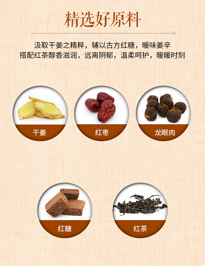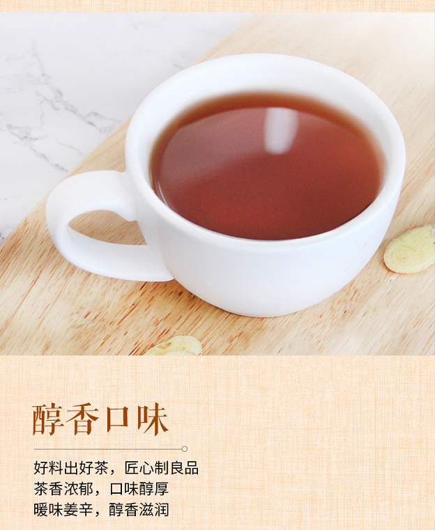 此外,在传统红糖姜茶的基础上,还加入了补血养胃的红枣、补心脾益气血的龙眼肉,醇香滋润的红茶,强化补血之效的同时,能舒缓情绪,平抑怒火,一年四季都非常适合饮用。