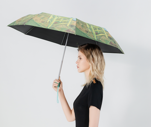 这是一把充满艺术气息的伞,绿色的树脂伞柄,质感细腻,伞面印有《梵高的椅子》,看着它仿佛看到梵高当时作画的模样。