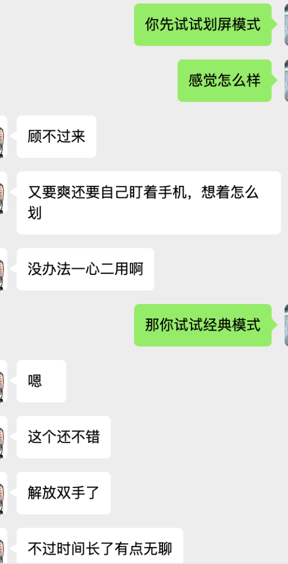 在我和小P连线的过程中,除了可以进行划屏以外,还可以进行实时聊天。方便我了解小P每时每刻的反应。