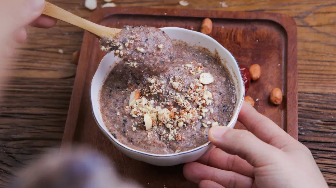 新良黑全麦粉60g 黑芝麻10g 花生50g 白砂糖20g 开水(牛奶)250g