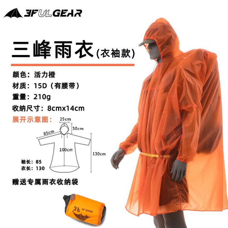 三峰轻量化雨衣 登山徒步必备 15d涂硅面料 防风防雨防撕裂