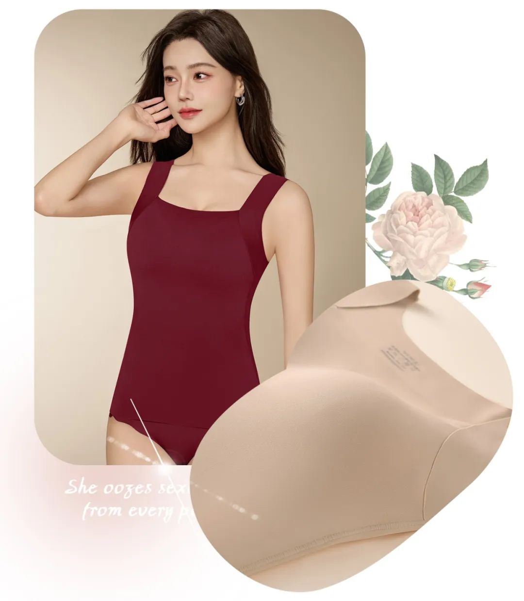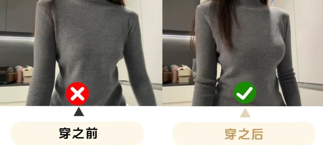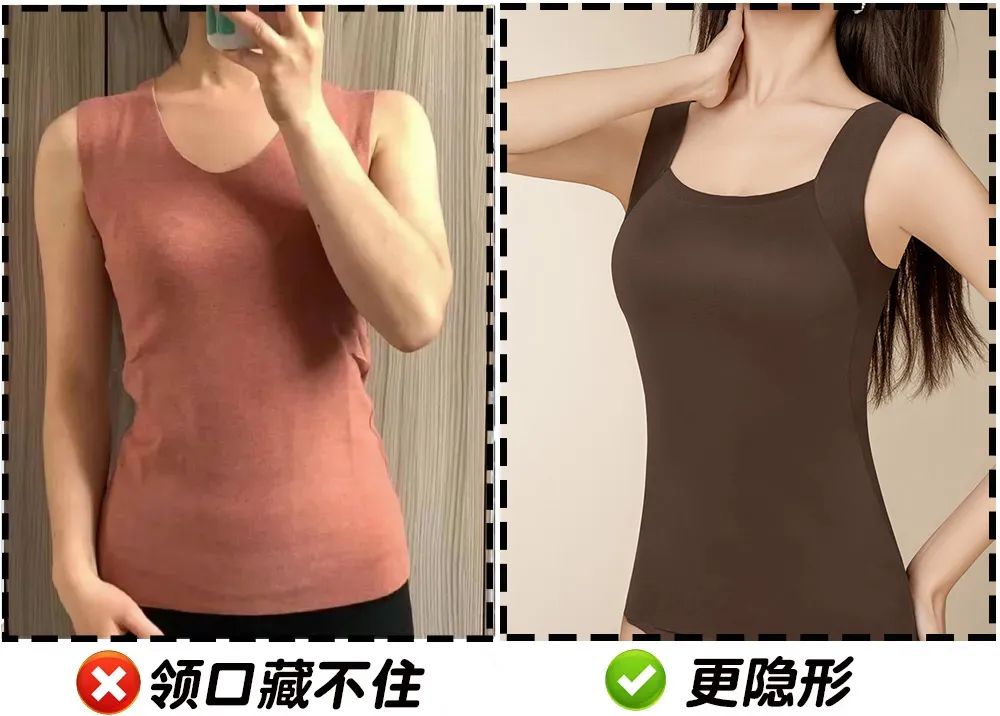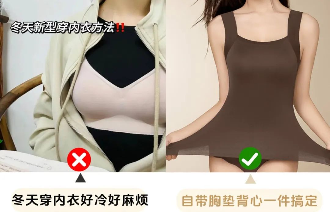 有了这款美肤保暖背心后,直接一件搞定,早上套上外套就能出门,因为它可以直接代替文胸稳定胸型。