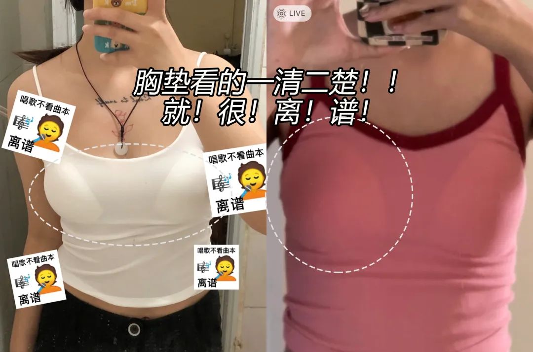 而且,像之前一些带杯垫背心都有个通病:胸垫不贴合胸型,穿在身上就像扣了两个碗在胸前,甚至连胸垫边缘都看得一清二楚。