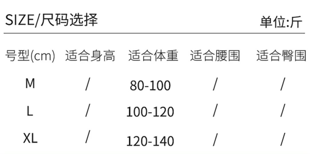 尺码从M到XL,能从80斤穿到140斤。