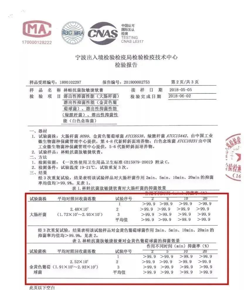 这款软膏林蛙提取的抗菌肽成分,是菌落的敌对者,能潜入皮肤深处,抑制菌种!