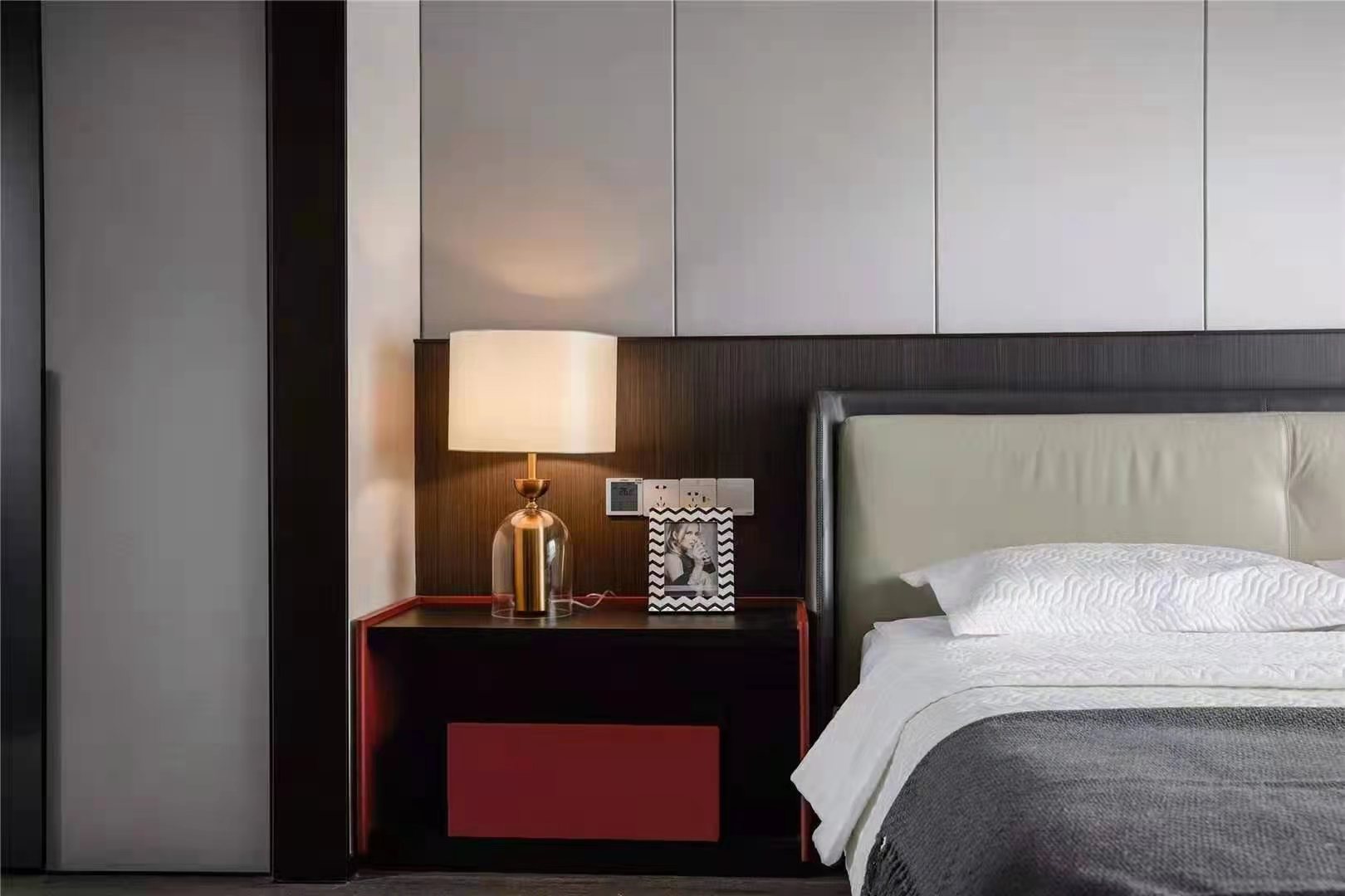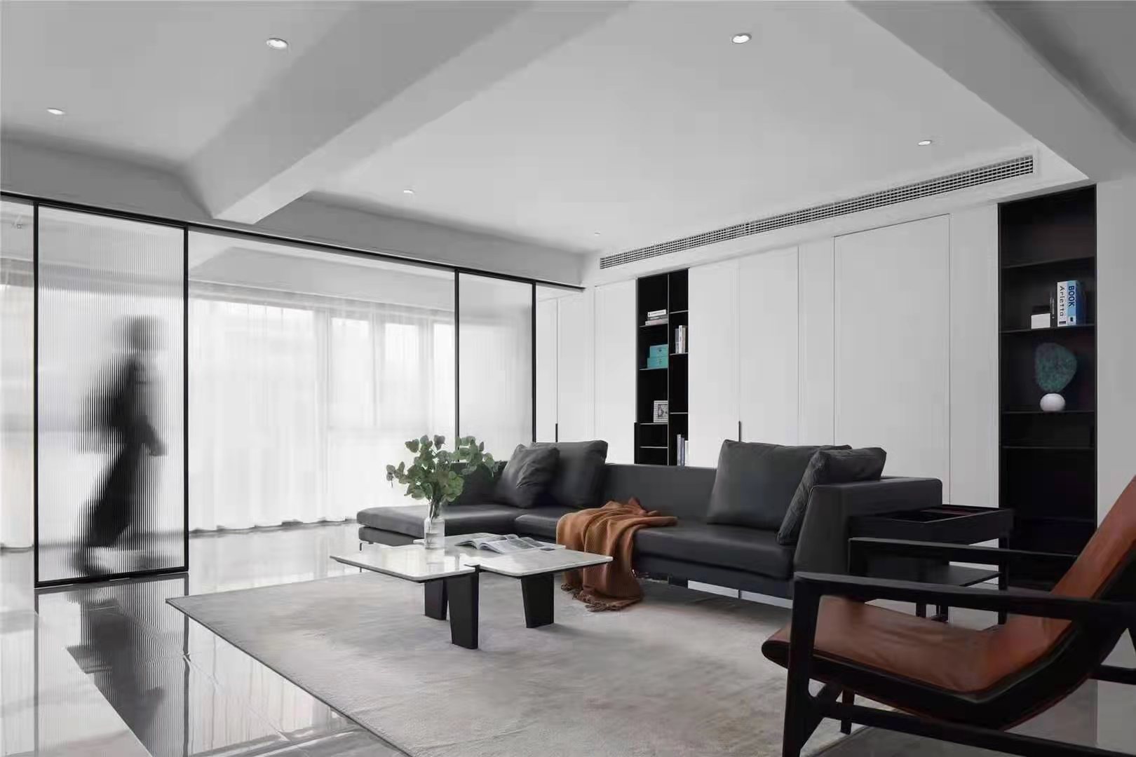 这个案例有着利落现代风设计,营造出舒适个性的居家空间,不同材质的融合与碰撞让空间明净且具有超强的质感。皮革、石材、木质相互映衬,Anna组合沙发以绝对主角的,黑色真皮质感,设计流畅精致。Vesken茶几的色彩选用了黑与白的搭配,色调协调于环境,又可以提亮客厅的中心区域。