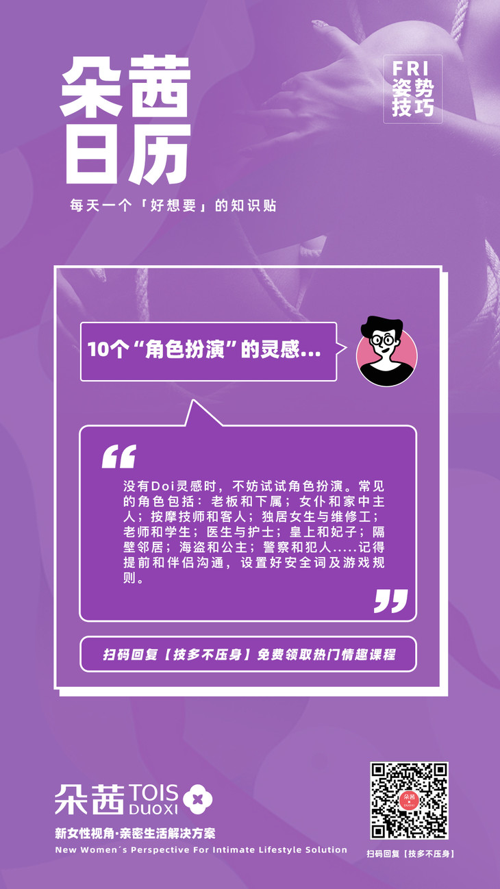朵茜潮玩,推崇自信、满足至上的生活方式,专业的玩具测评和课程体系,帮助并陪伴你解决亲密关系中的问题。带你玩转闺房时尚!