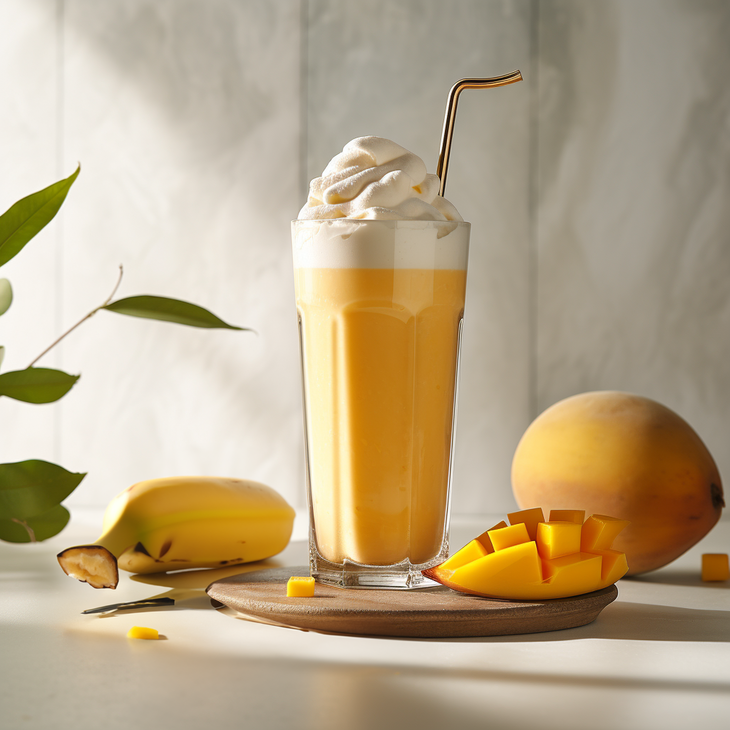 1、芒果洗净去皮去核,香蕉洗净去皮备用。