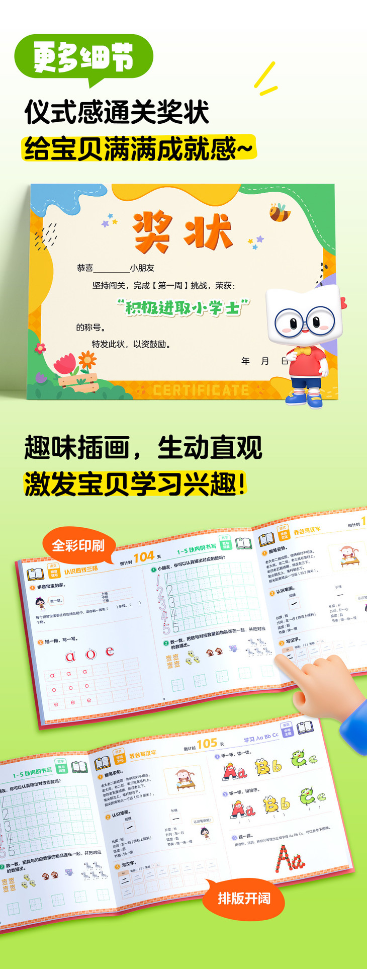 从每天一页的学习节奏到科学规划的知识点,15周的学习计划将帮助孩子培养良好的学习习惯,确保他们在小学入学时拥有充足的知识储备💪