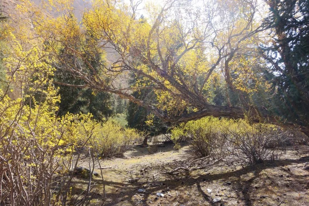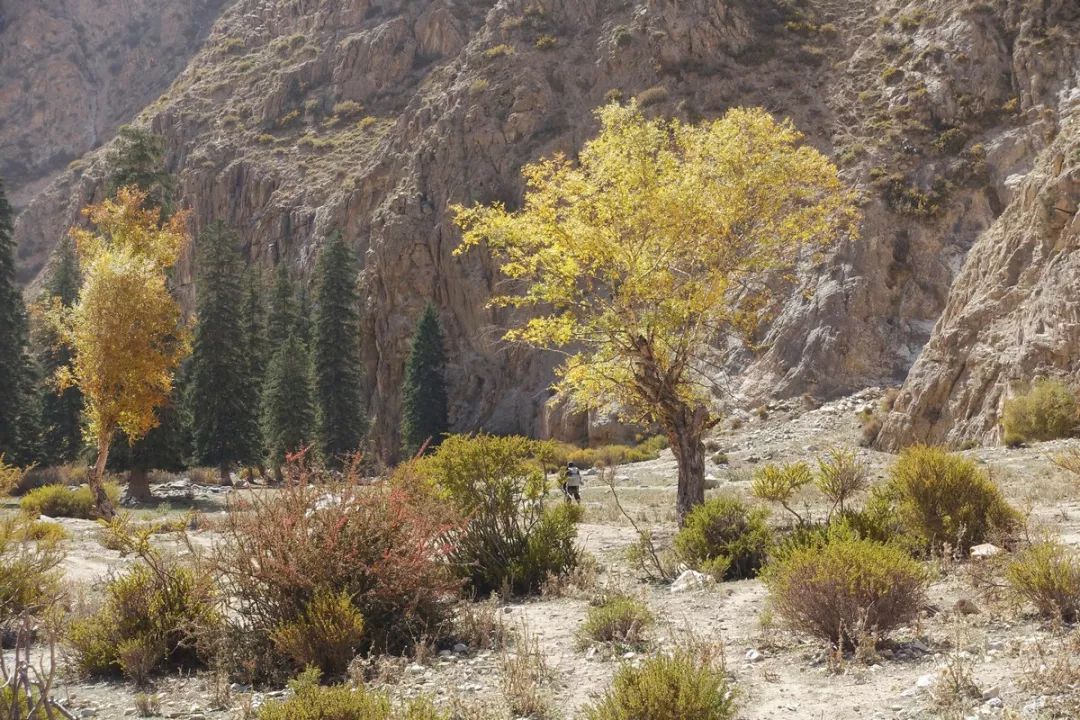 尽管博河河谷比中天山北坡那边要荒凉得多,但土坡上也生长着好多小树呢。总有些生命能够适应这里的恶劣环境。