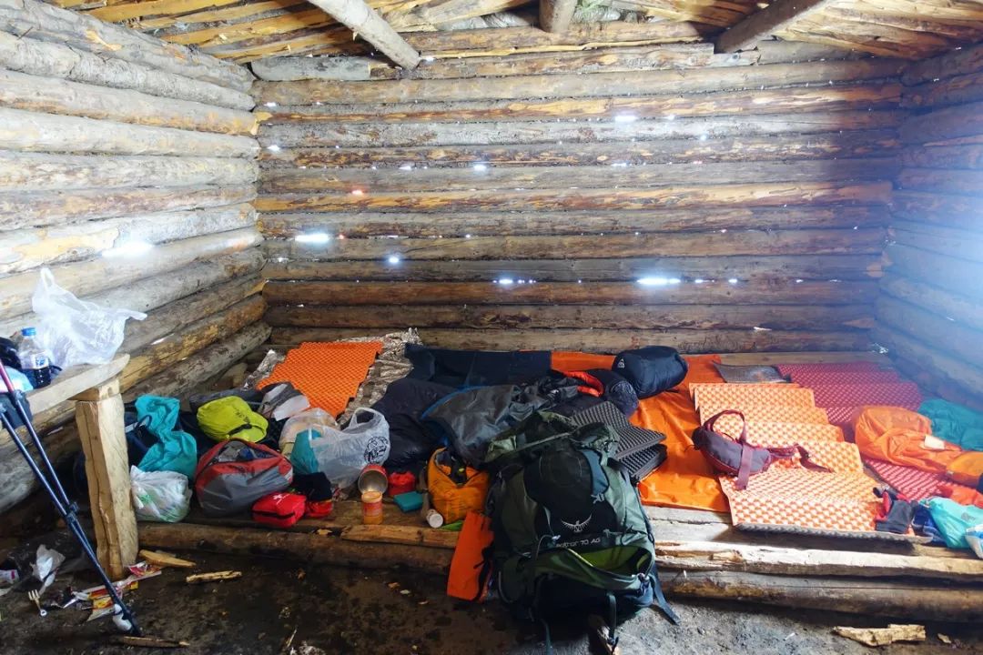 小木屋很豪华,于是我们决定今天到此为止,休整半天。今天再消耗点食物,能减点负,明天早点出发翻达坂(乌孙古道通常是走5.5~6天,而我们计划是7.5天,预留1天时间在天堂湖发呆思考人生,再加1天应对大雪导致翻不了达坂的情形)。