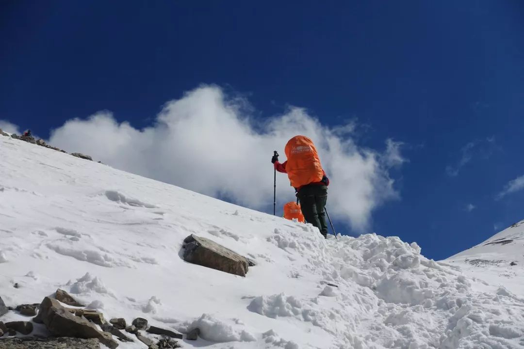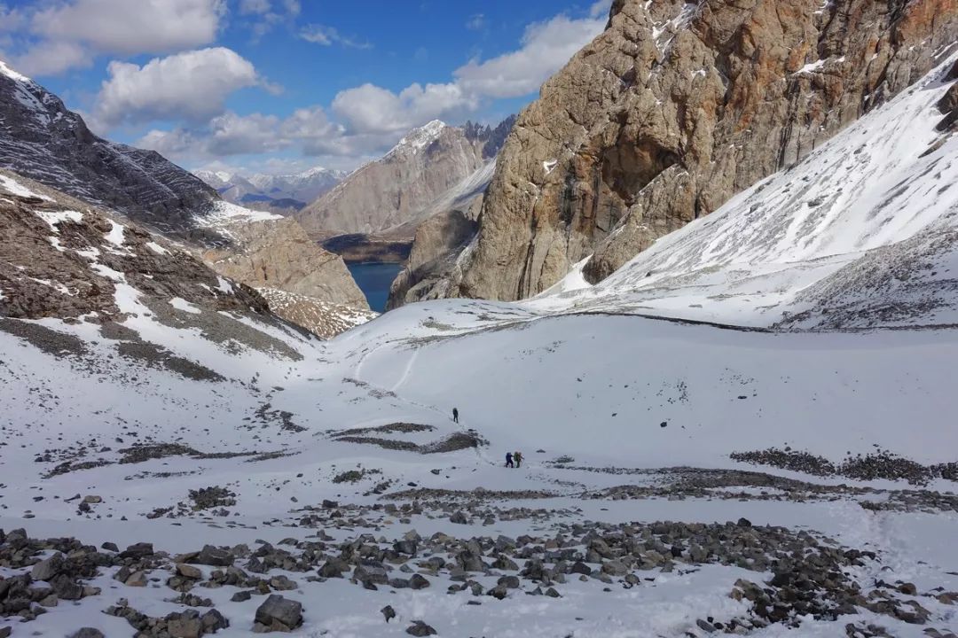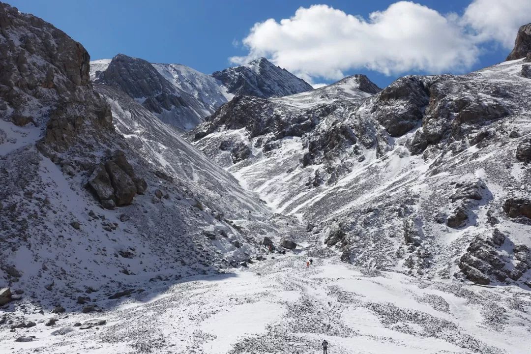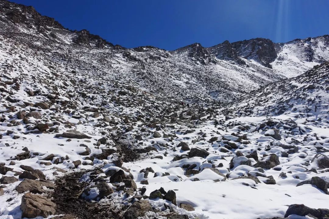 继续攻顶。最后这段的积雪较多,坡度较大。没想到翻个海拔不到4000米的达坂,竟然还体验了一把登雪山的感觉,真开心。