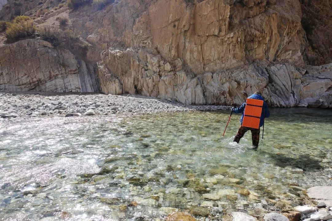 这段河谷路,我过了约40次河,趟水估计有30次,如果高绕多一些大概趟20次就行。穿溯溪鞋加厚袜子或潜水袜来趟河最好。