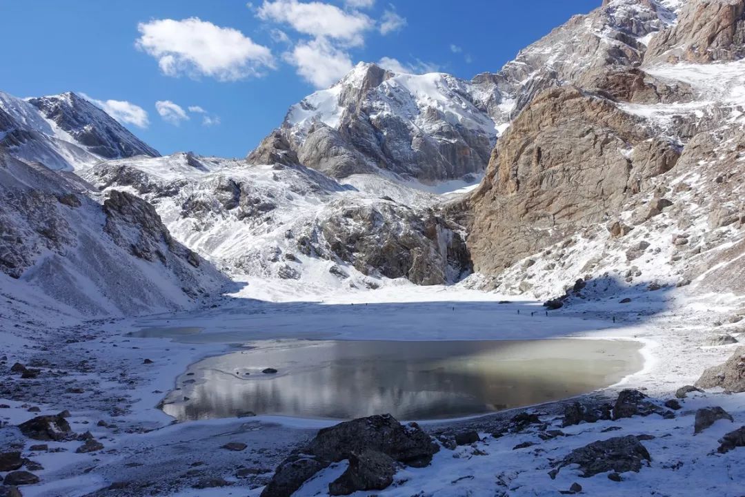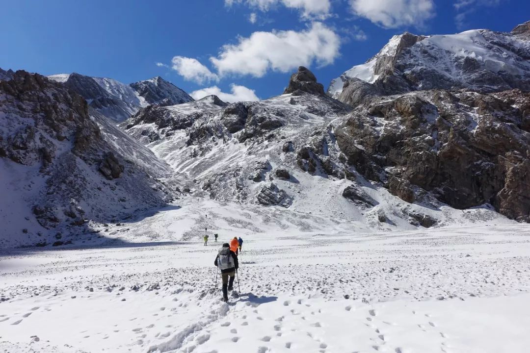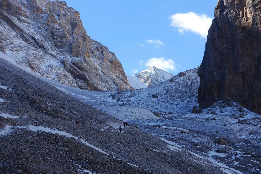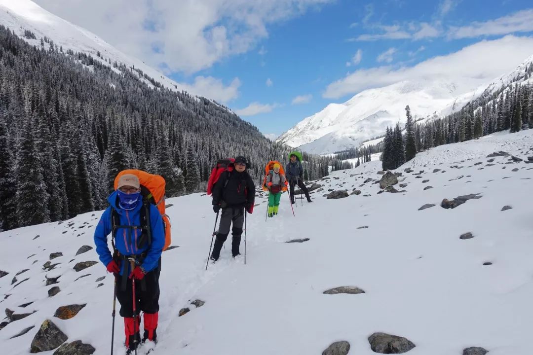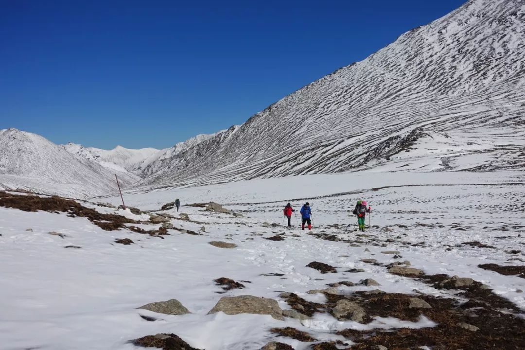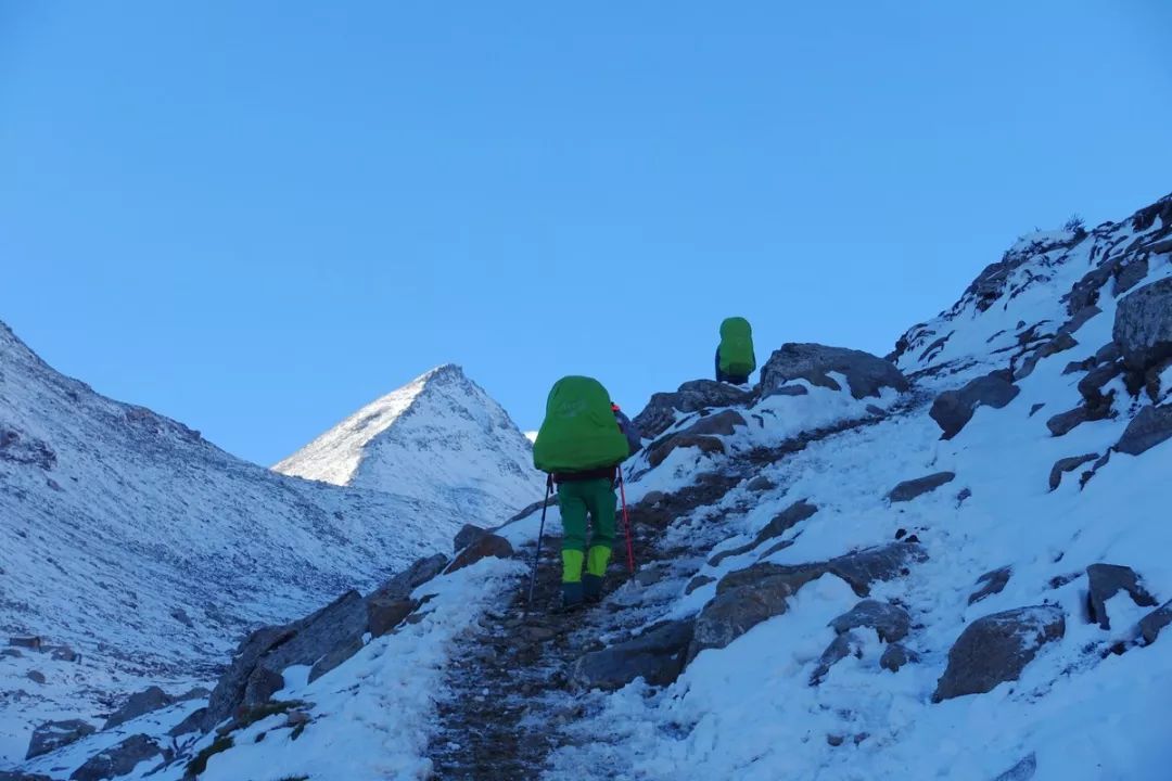 当时考虑是:今天因为起床较晚及收拾装备耽搁了2个多小时,加上冰雪路况,如果今天翻达坂,我们几个可能要下午7点才能站上达坂,潘哥慢一些,可能要到8点钟,那时候已经快天黑,没多少时间来下降。所以不管能不能翻过达坂,我们都很可能是在海拔3500米以上的地方扎营,即便不考虑大风的问题,就这个海拔,有可能大家的睡眠质量不高,进而影响到下一天的状态。