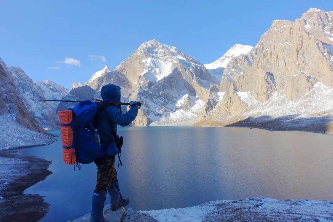 9月26日。清晨气温较低,太阳还没照过来,所以路面的泥土还是冻住的,即便是鞋底脱胶也不用担心进水的问题,套着冰爪走起来更是容易,泥地和雪地随便踩。