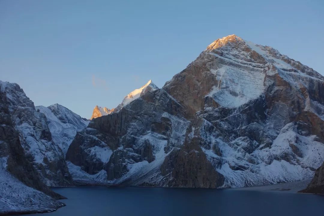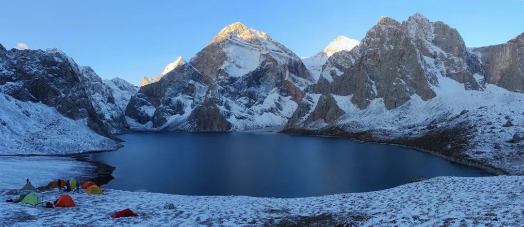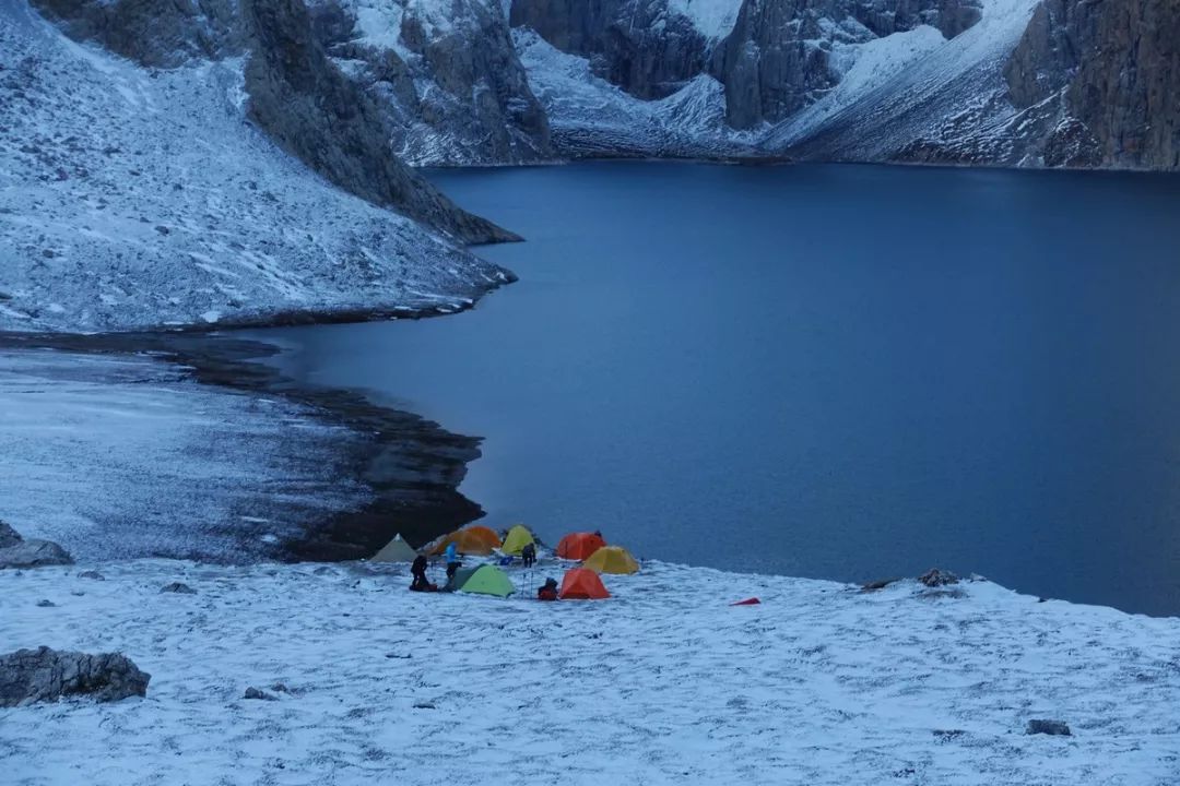 9月29日早上8点起床,在帐篷里面就感受到外面被压着一层东西,看来是跟扎营第一天一样,晚上又下雪了。出帐篷一看,嘿,能见度很高呀,看天色应该是个晴天呢。