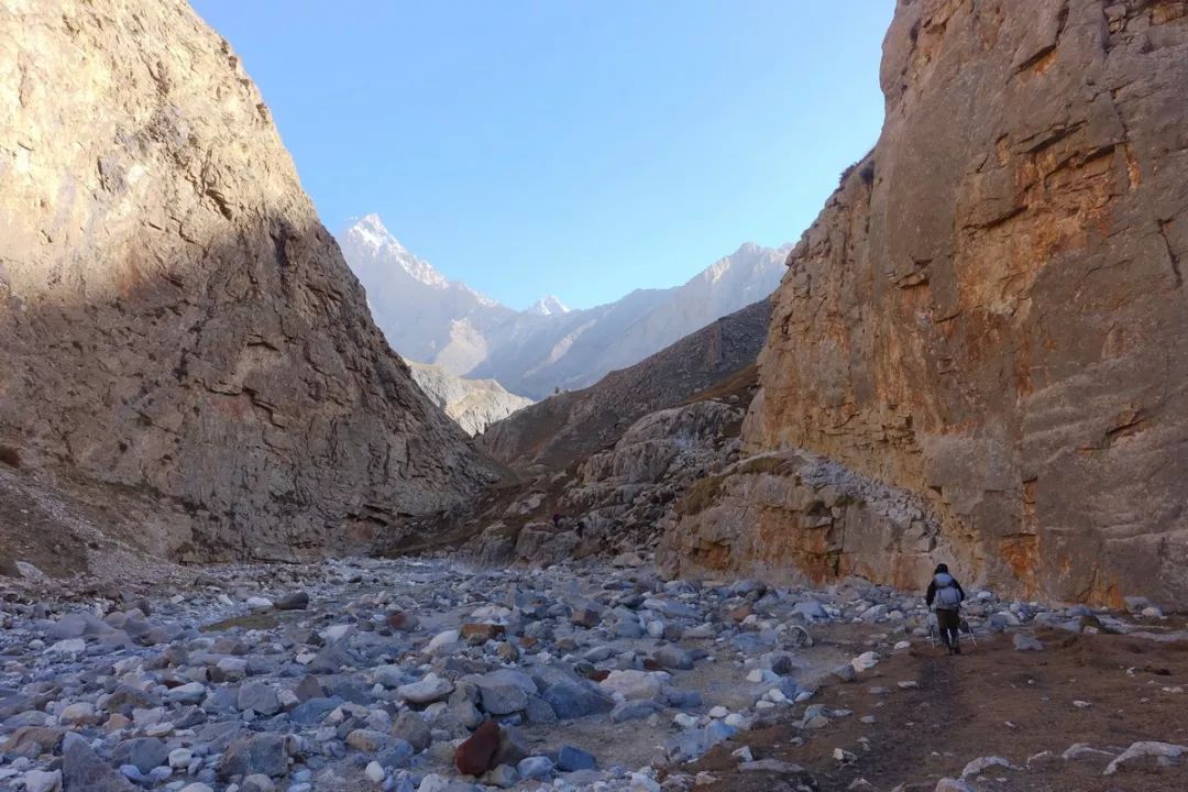 阳光照在河谷处时趟水过河感受到的是凉快,但太阳照不到时趟水感受到的是冷,换句话说:天气晴好时11点到16点之间(北京时间,换算成当地时间则是9点到14点)趟河比较容易和安全,其它时间段或阴雨天气时趟河会感受到阴冷。但必须强调,因为季节和天气好的缘故,我们当时面对的是easy版本,如果变成hard版本,那就不好玩了。