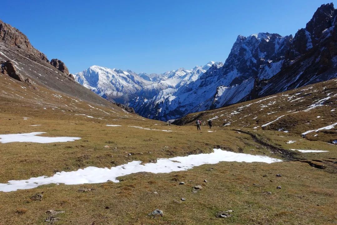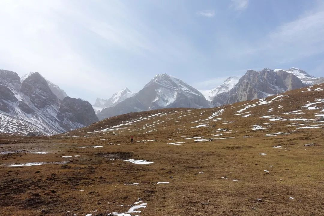 从琼达坂下坡一段时间后,海拔降下来不少,地面上积雪所剩无几。