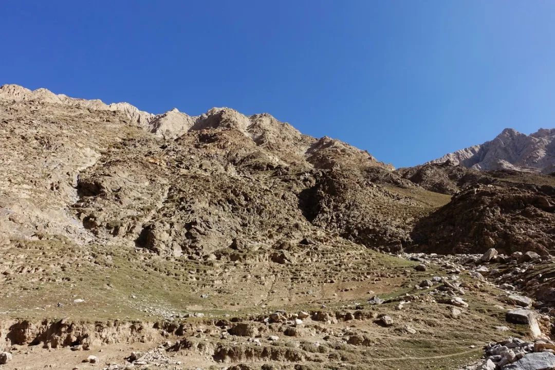 一路走来,虽然也能看到树和灌木,但整体上还是荒凉,跟北坡那边没法比。在这里,最不缺的就是石头和土块。
