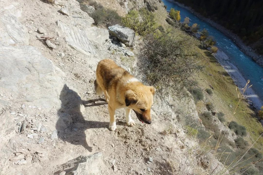 接下来是我们的编外队员——小黄出现了。小黄有一条腿瘸了,但身残志坚,走得比人还快。自此之后,小黄一路跟我们行进,直到倒数第二天(最后一次扎营)。