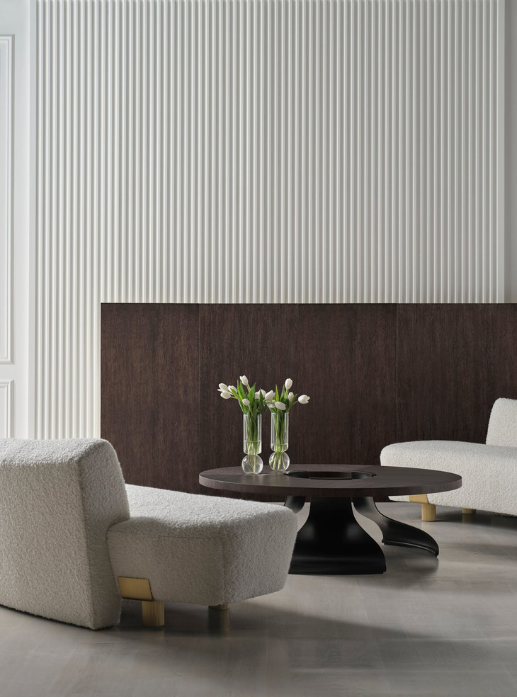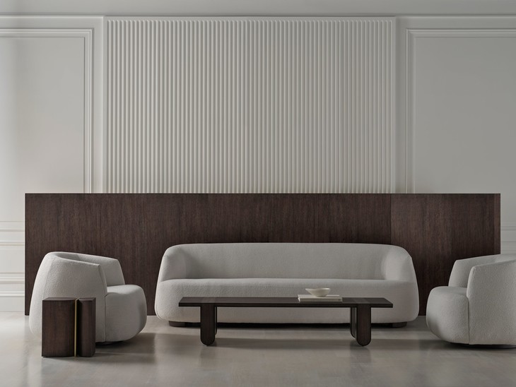 全系列家具设计有着精炼设计的轮廓造型,Balustrade休闲椅以其精美而独特的廓形营造出强烈的视觉效果,排布协调的金属椅腿呈现出连续性的律动感。茶几则以优雅弧线、迷人多面性十分吸睛。