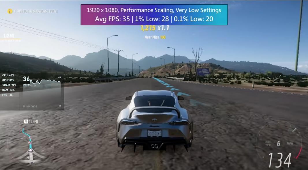 而今日,有位油管博主RandomGamingHD更是将这款游戏的优化情况翻了个底朝天,他并没有选择使用低端的显卡进行梯度测试游戏的底线,而是选择一步到位——通过用集成显卡运行游戏,来测试《极限竞速:地平线5》的终极优化情况。