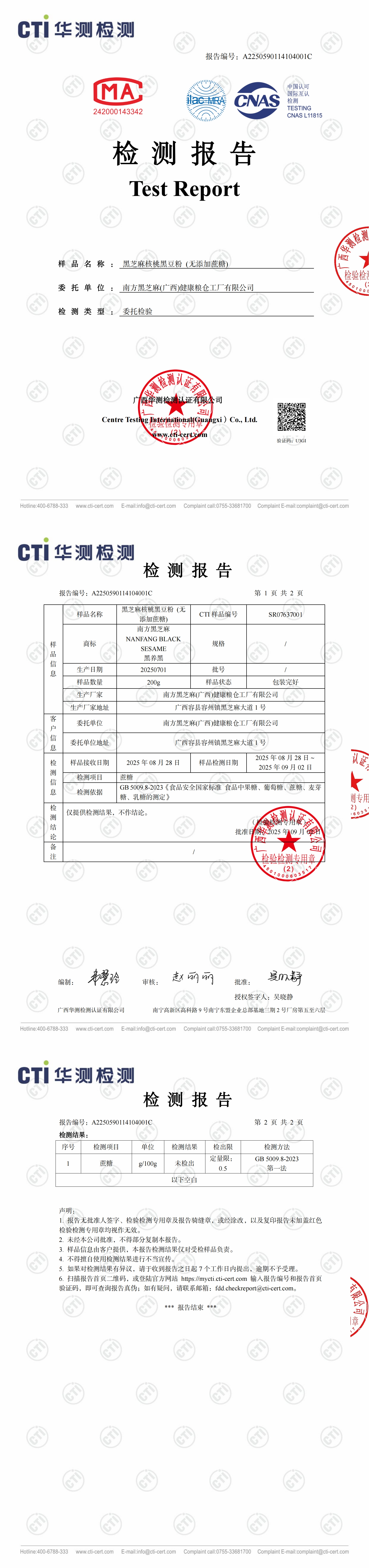 黑芝麻核桃黑豆粉(无添加蔗糖)600g 质检报告