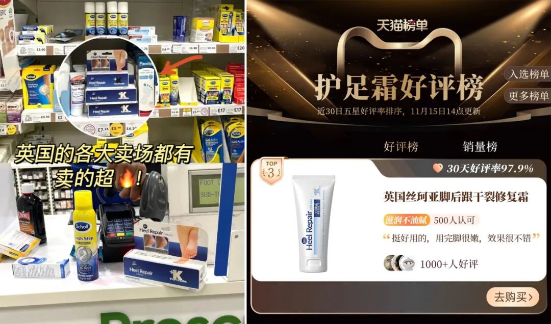 * 市场销量证明一切: 英国本土畅销25年,月销爆卖20万支,还荣登天猫护足霜好评榜TOP3(30天好评率97.9%)!