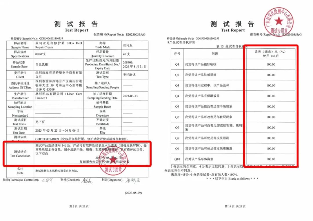 经过国内权威机构人体试验证实:连续使用14天,对干燥、皲裂、粗糙的改善(满意)率可达100%。
