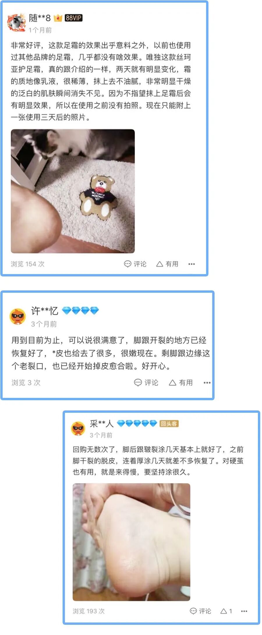 很多顾客反馈,买给父母用后,老人家长年粗糙皲裂的脚后跟变得柔软了,走路再也不喊疼。
