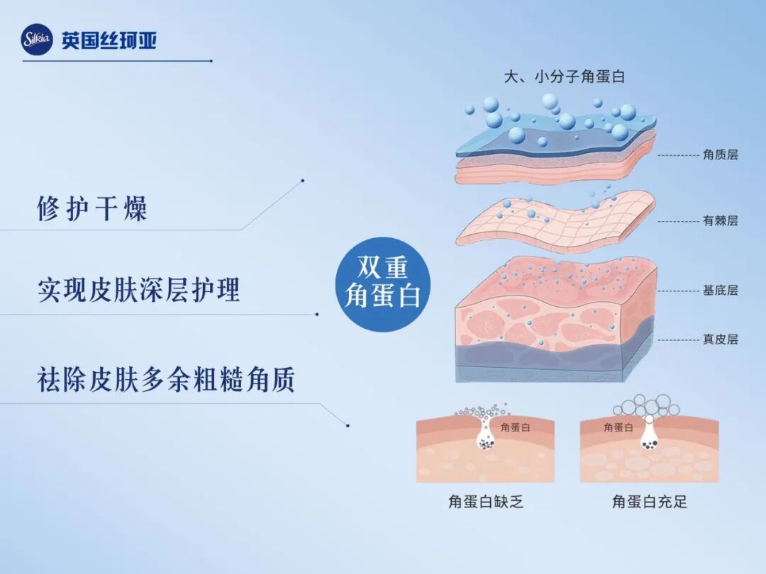 这个「双重角蛋白」修护体系由“小分子角蛋白”和“大分子角蛋白”两个部分组成,它们就像一个配合默契的“修护军团”:
