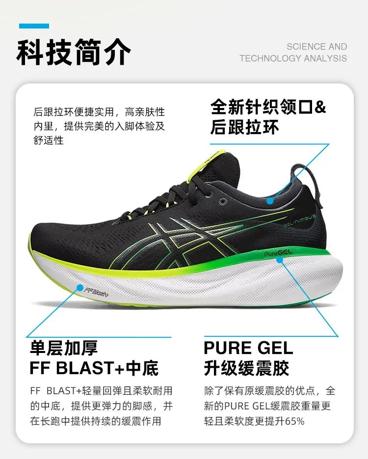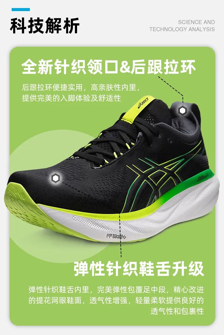 另外,中底的泡棉也比上一代增加了20%的用料。目前FF Blast+材料属于更加环保,用在ASICS非竞速跑鞋的顶级材料了。能够提供超轻的缓震,同时还能有更加舒适的跑步体验。