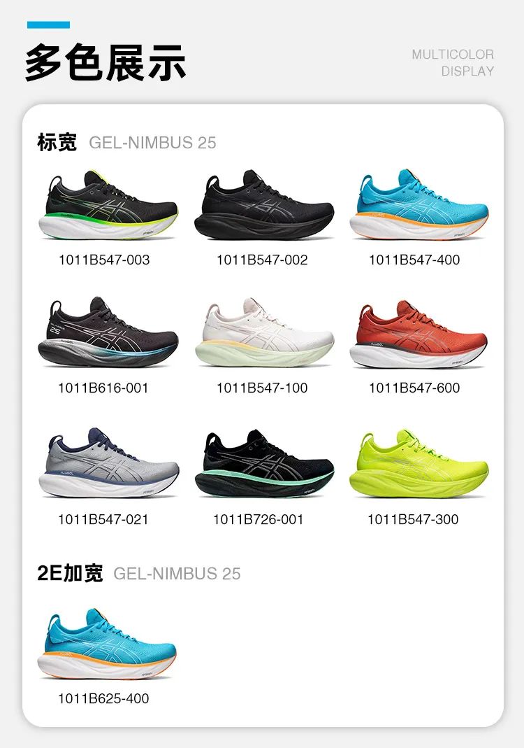 超厚的中底、流线型的外观、舒适的脚感……都让这双Nimbus 25,变得与众不同,和此前 ASICS的诸多跑鞋有了不一样的风格。