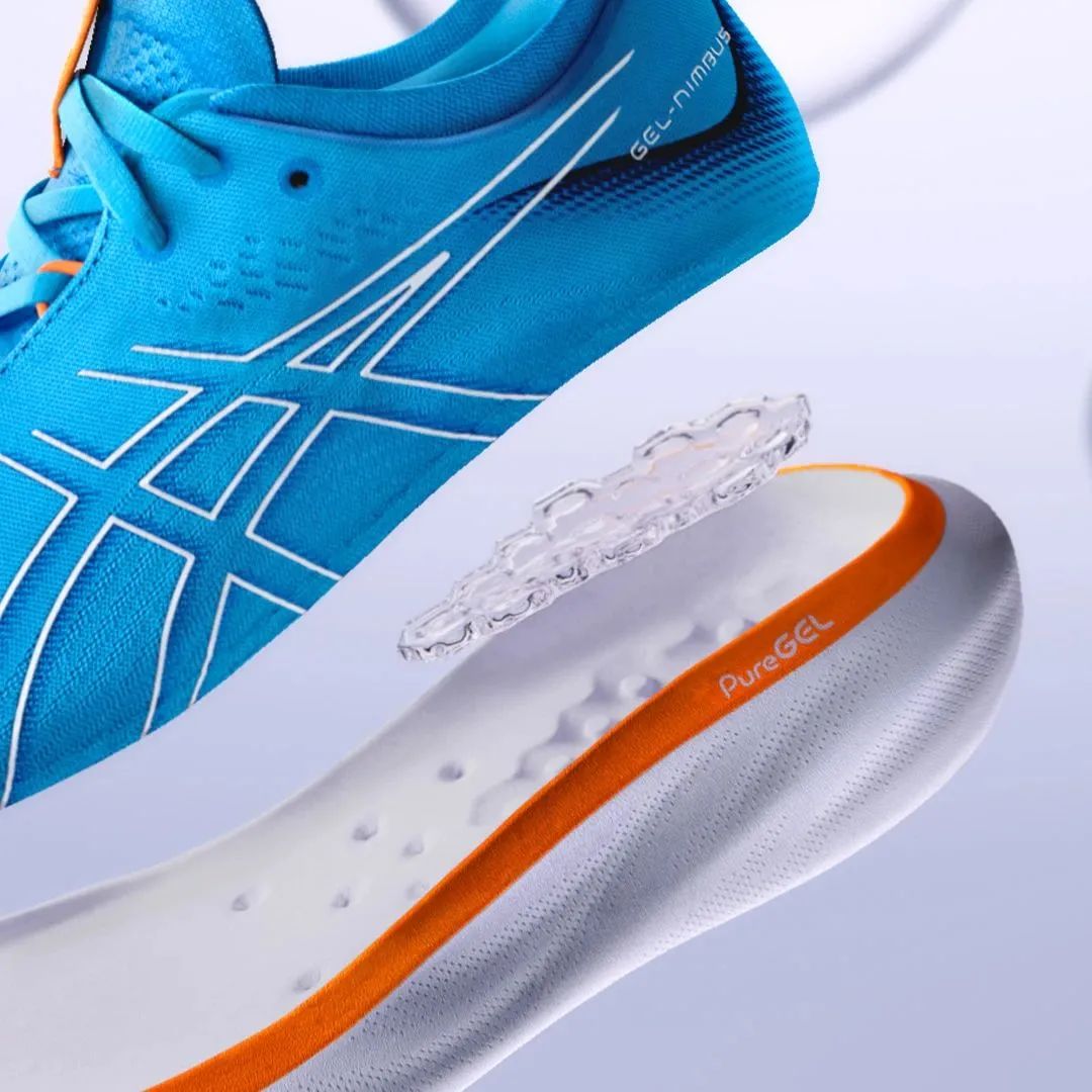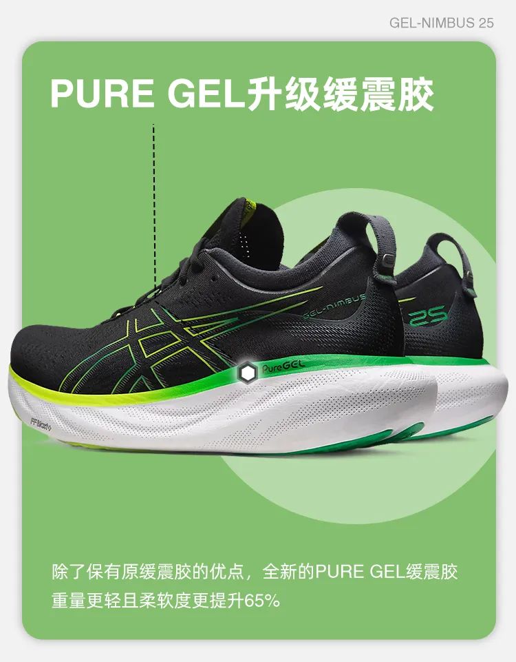 升级的PureGE技术相比于之前的GEL缓震胶密度更低,更加柔软,缓震效果更好。