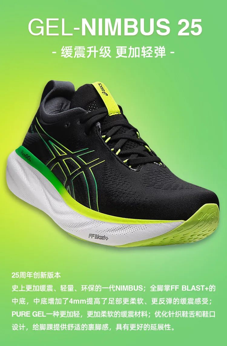 亚瑟士GEL-Nimbus 25旗舰缓震跑鞋