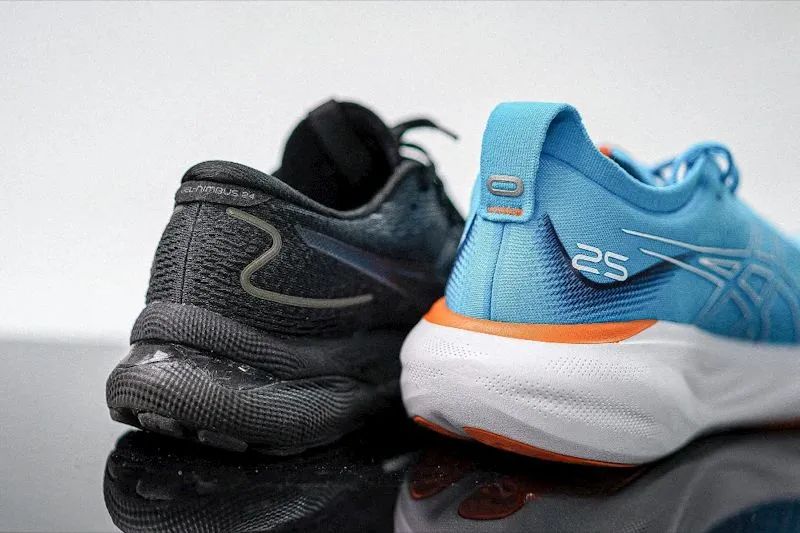 鞋面整体性更好,后跟的稳定片也消失不见。贴合 性更好的鞋领结构和针织鞋舌,让Nimbus 25的包裹性更加出众。