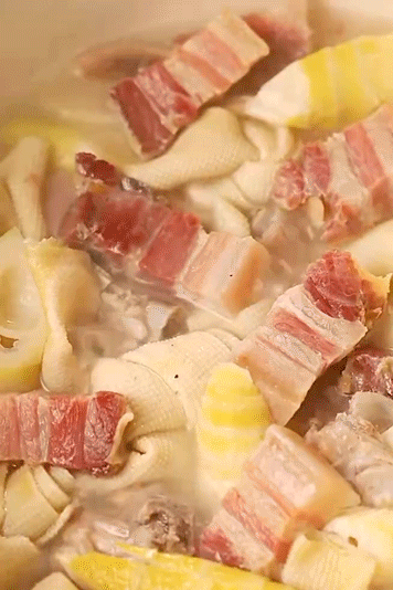 腌笃鲜,几乎成了春笋的名片。殊不知,这道菜其实起源于徽州。春笋切薄片,和咸肉一起小火慢炖,滋味清鲜,称“腌炖鲜”,这便是腌笃鲜的原型。