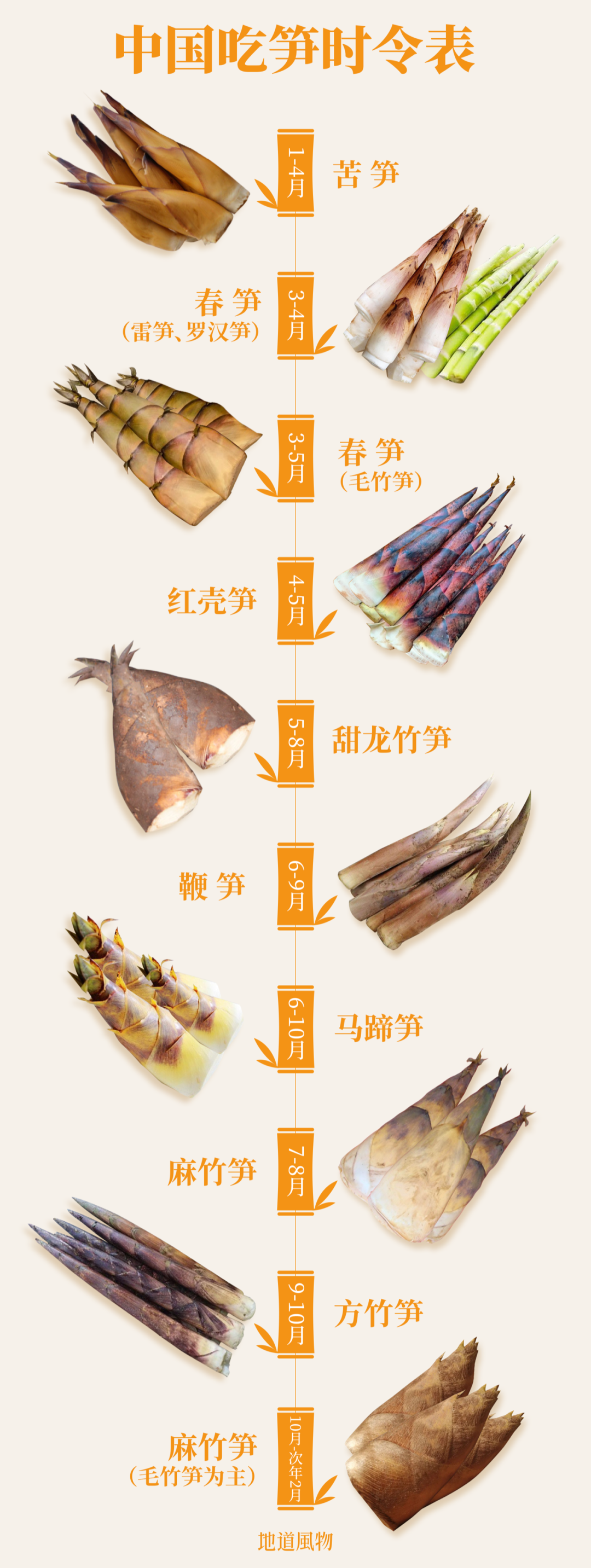 春天吃春笋,冬天吃冬笋,夏秋时节吃鞭笋;喜甜的首选云南甜龙笋,能吃苦的推荐粤北苦笋,爱吃火锅的认准金佛山方竹笋,还有国宝熊猫都爱不释口的天目山雷笋和箭竹笋......根据季节和地域的不同,笋也长成了不同的风味和性格。