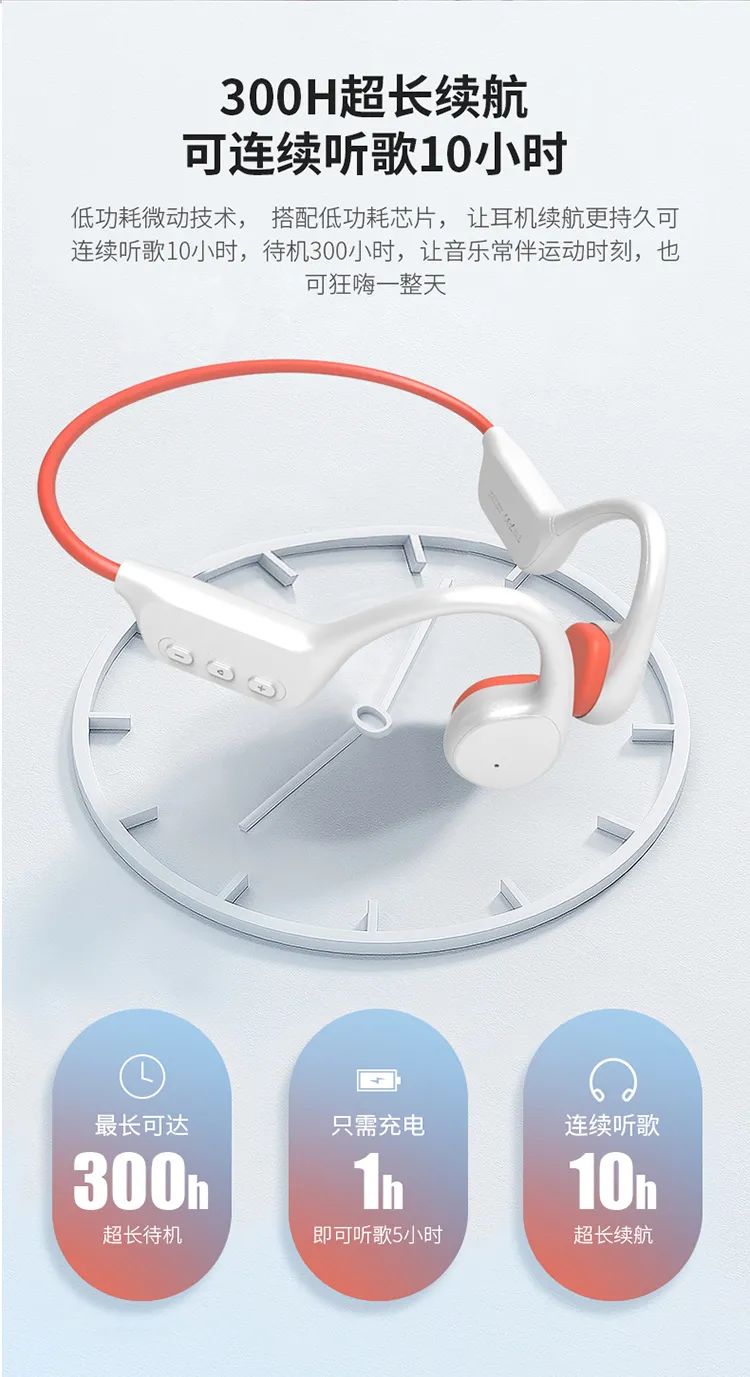骨传导是利用骨头震动传音原理,不需要直接通过耳膜传输,对耳朵听力影响降到最低,不入耳,也更干净卫生。