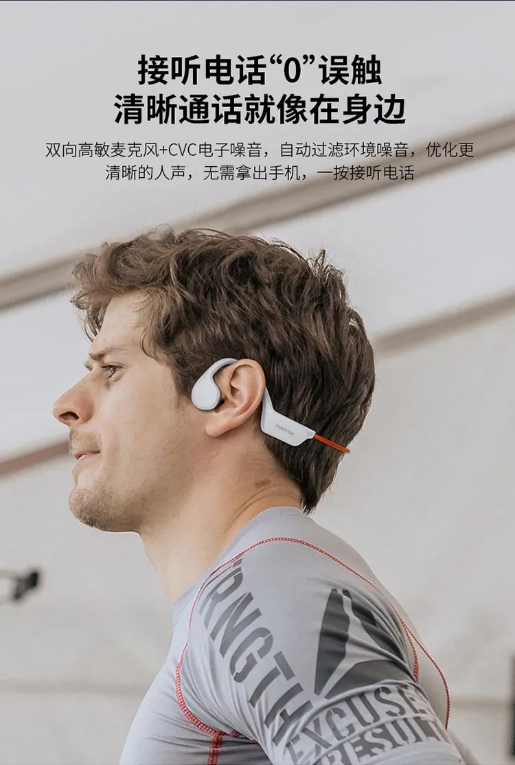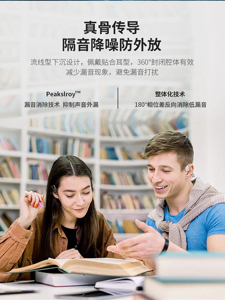 Reakslroy漏音消除技术,有效降低90%漏音现象,同时也降低了骨传导发声的震动感,提升了音乐的品质,满足日常听歌的需求。